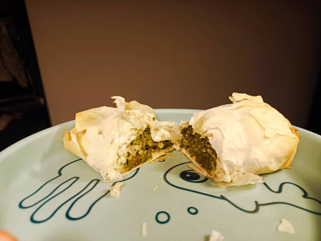 Mettez vos spanakopites sur du papier cuisson, badigeonnez les spanakopites avec l’œuf restant, et enfournez entre 30 et 45min, puis servez !